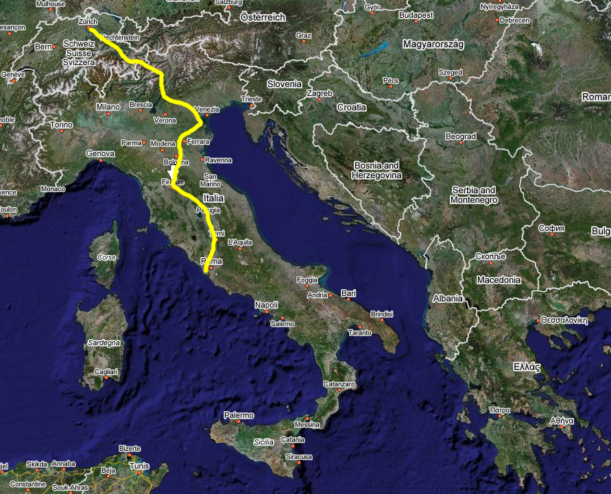 1. mit dem Fahrrad bis Rom (geplante Strecke)