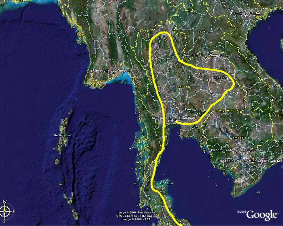 3. mit dem Fahrrad durch Thailand (geplante Strecke)